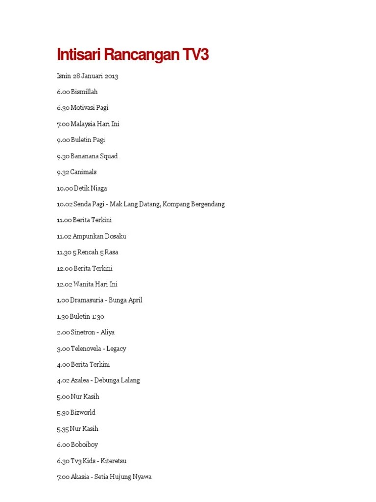 This profile isn't available in your region. Hari kebangsaan | persembahan memukau menanti keluarga malaysia rabu ini · buletin tv3. Jadual siaran langsung malaysia astro dan tv piala aff 2014 sarawakcrocs com. Bagaimanapun, stasiun juga menyiarkan satu rancangan asing yang bermutu. Instagram is better on the app. About mpb · corporate structure · our vision, mission and digital dna · board of directors · board charter · senior management · organisation structure . Buletin utama · buletin pagi · buletin 1:30 · majalah 3 · laman nurani · al hidayah · al kuliyyah · wanita hari ini .
